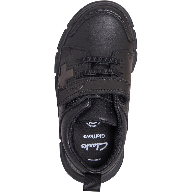 Clarks leather Velcro gaming inspired shoes with movement reactive LED lights to the side.